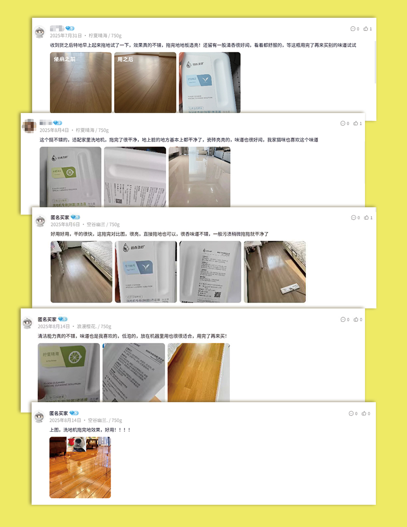 - 重油清洁款:厨房地面的油污、酱油渍,倒 5ml 进水箱,一遍就能擦干净,不用再手动返工。